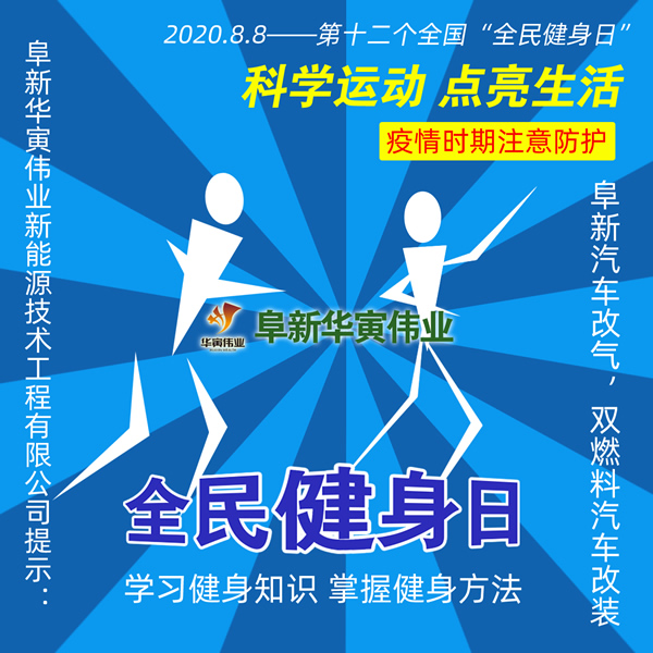 阜新華寅偉業(yè)新能源技術工程有限公司提示:2020.8.8是第十二個“全民健身日”,感受體育精神,科學健身。歡迎您瀏阜新華寅偉業(yè)新能源技術工程有限公司網(wǎng)站!阜新華寅偉業(yè)新能源技術工程有限公司:阜新汽車改氣,雙燃料汽車改裝,引進意大利技術,阜新華寅偉業(yè)竭誠服務,聯(lián)系電話:0418-6527222
